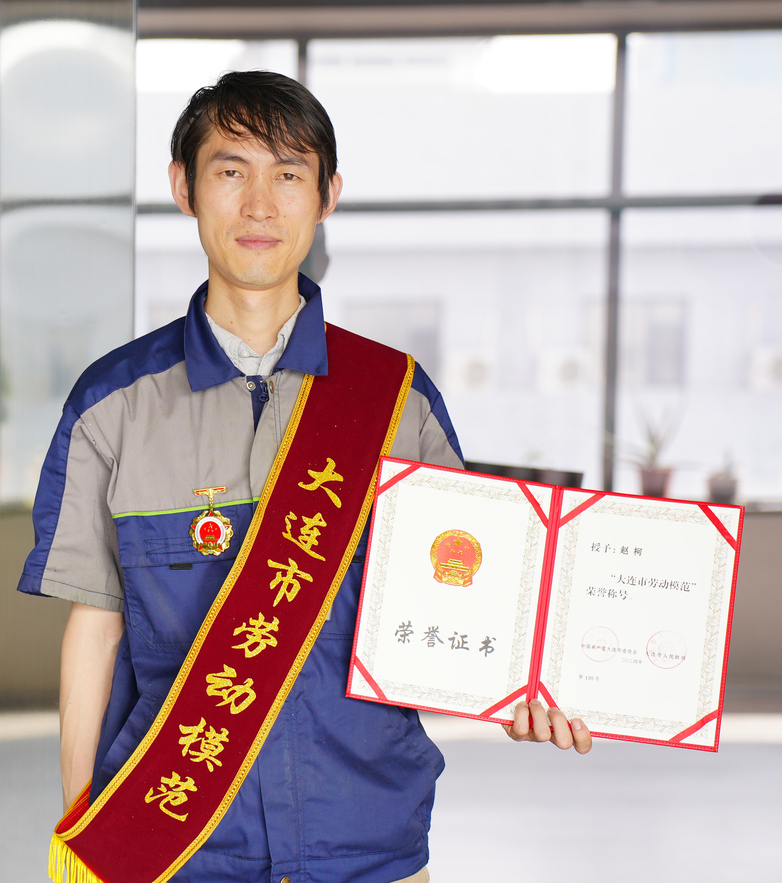 在大连市2024年度劳动模范的评选活动中,我司职工创新工作室领衔人赵柯先生以其卓越的技术创新能力、兢兢业业的工作态度和显著的工作成就,从众多候选人中脱颖而出,荣获“大连市劳动模范”称号。这不仅是对赵柯先生个人杰出贡献的高度认可,也是对我司长期以来致力于技术创新与社会责任实践的肯定。