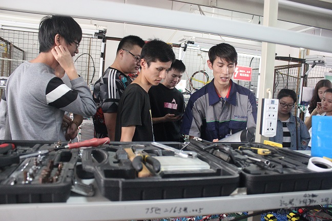 (上图为赵经理带领同学参观车间)